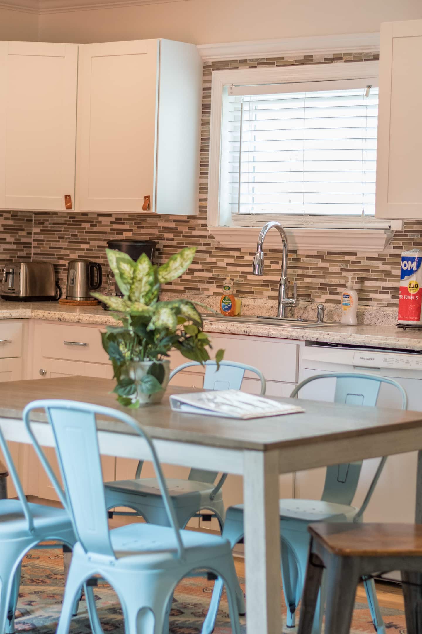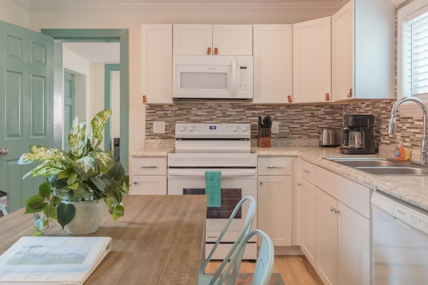 Fully stocked kitchen with dining area for group meals
