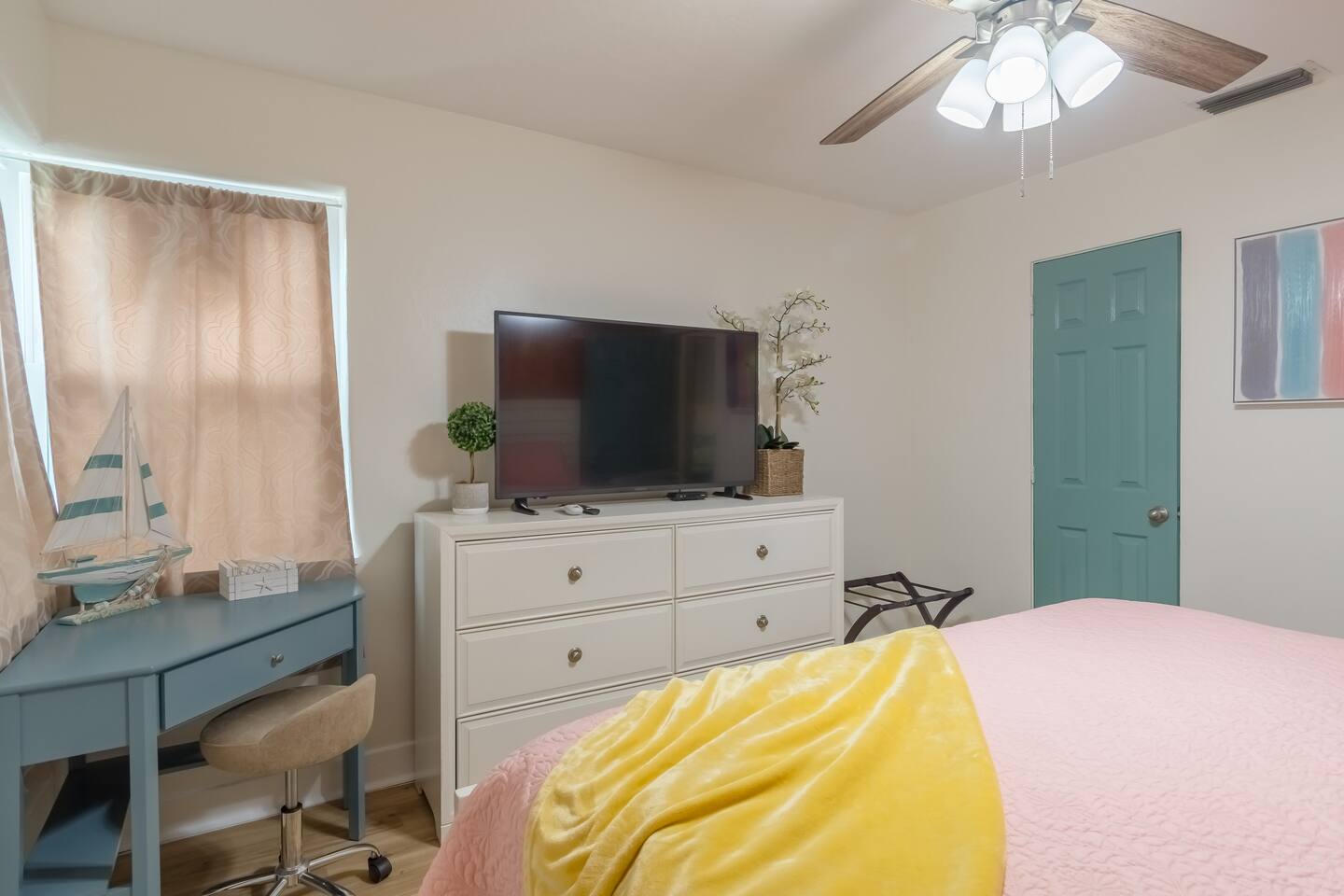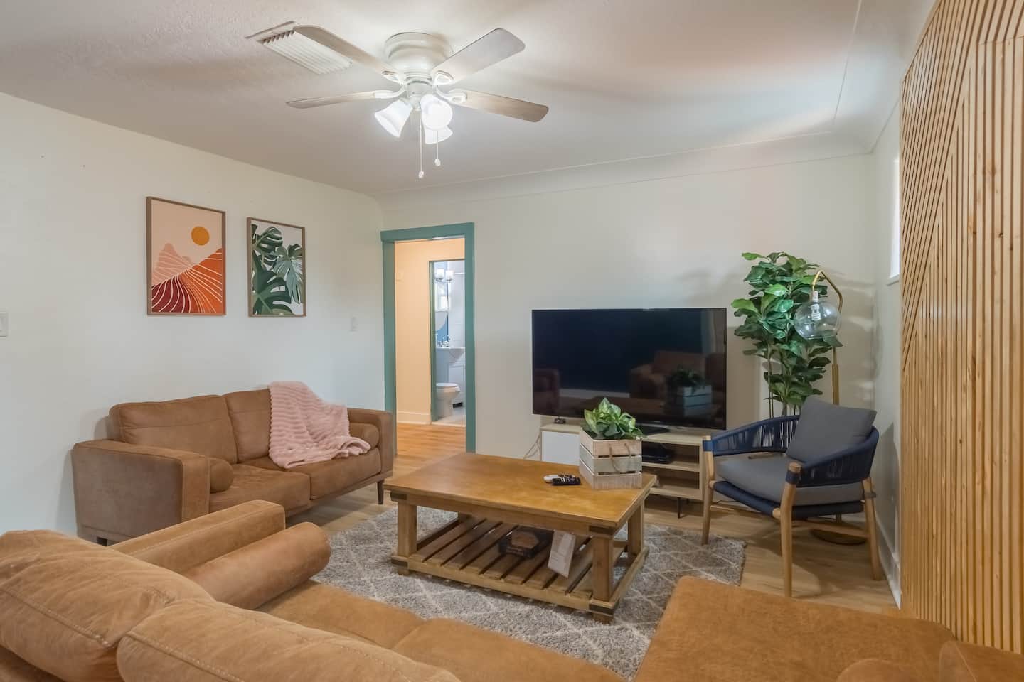 Mid-century design with bright, beachy vibes throughout