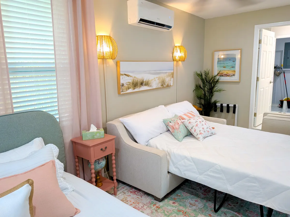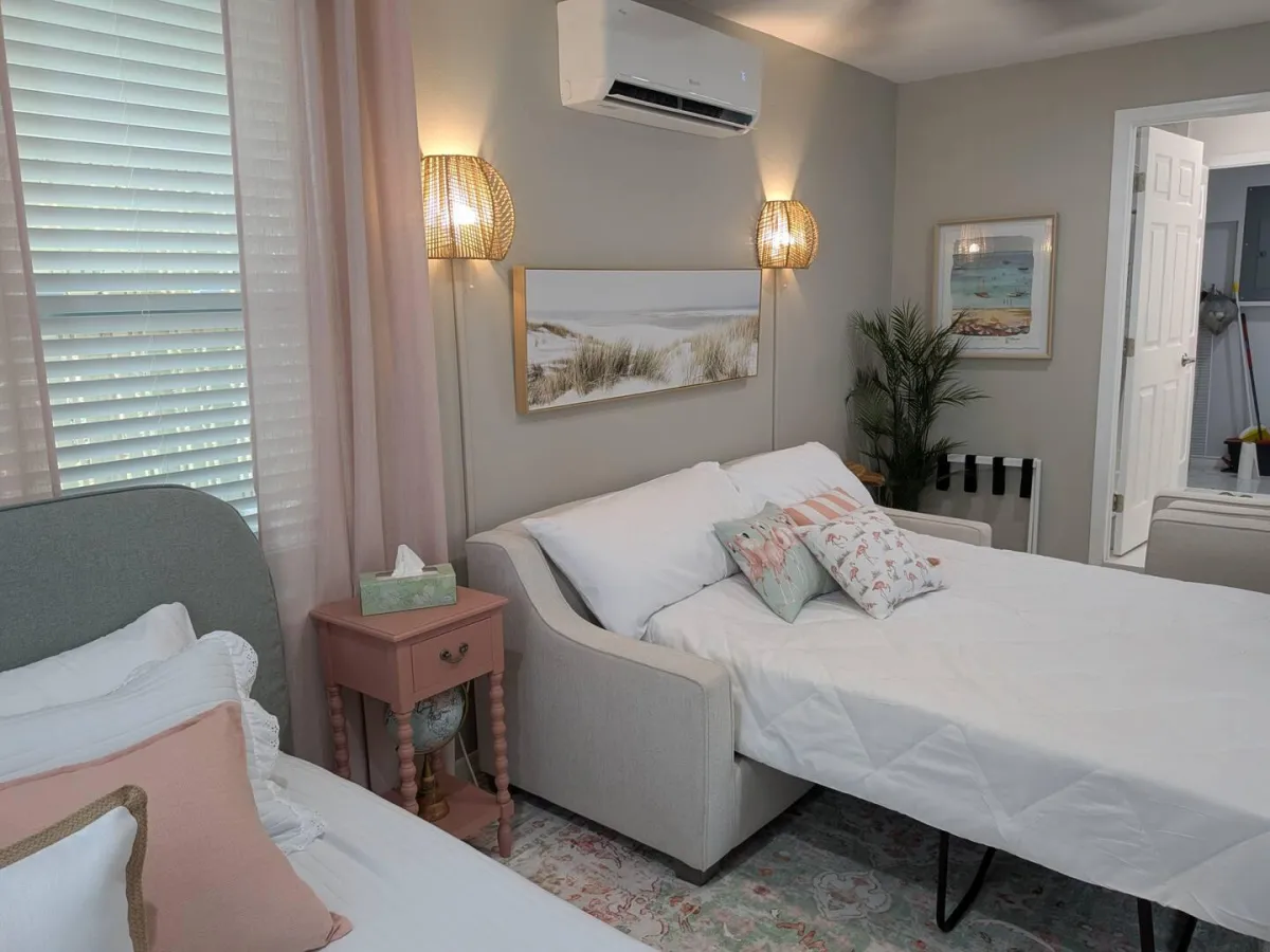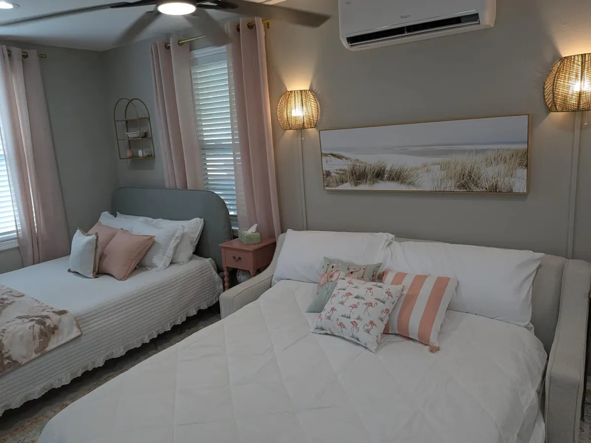 Escape to a stylish coastal studio just one block from the Intracoastal Waterway and minutes from Daytona Beach. Enjoy a private entrance, smart lock check-in, WiFi, full kitchenette, shared washer and dryer, and free parking. Walk riverside parks, kayak the Halifax River, or explore nearby attractions like the Speedway, beach boardwalk, pickleball courts, and more. Perfect for relaxing getaways or extended stays.