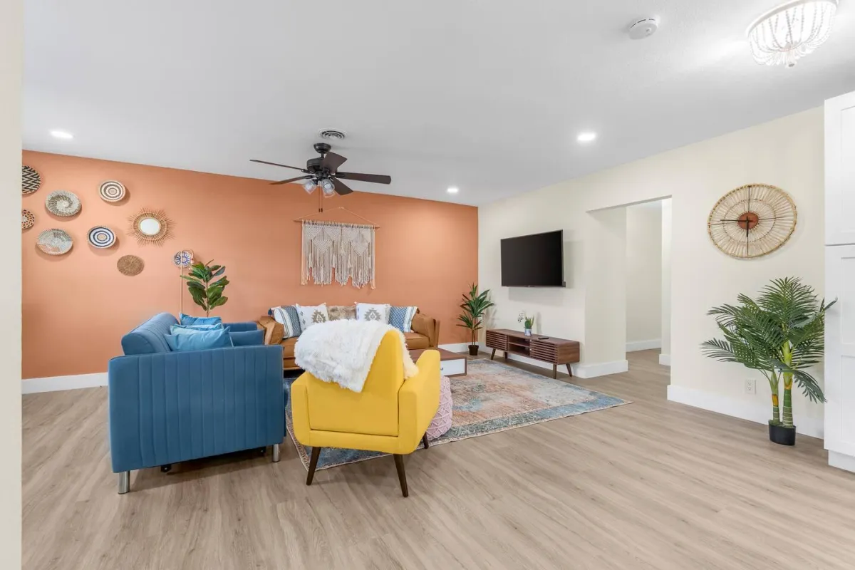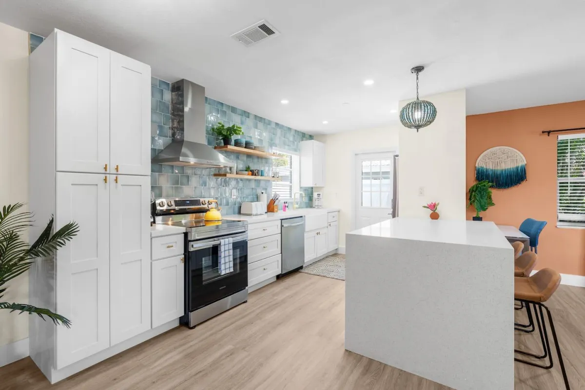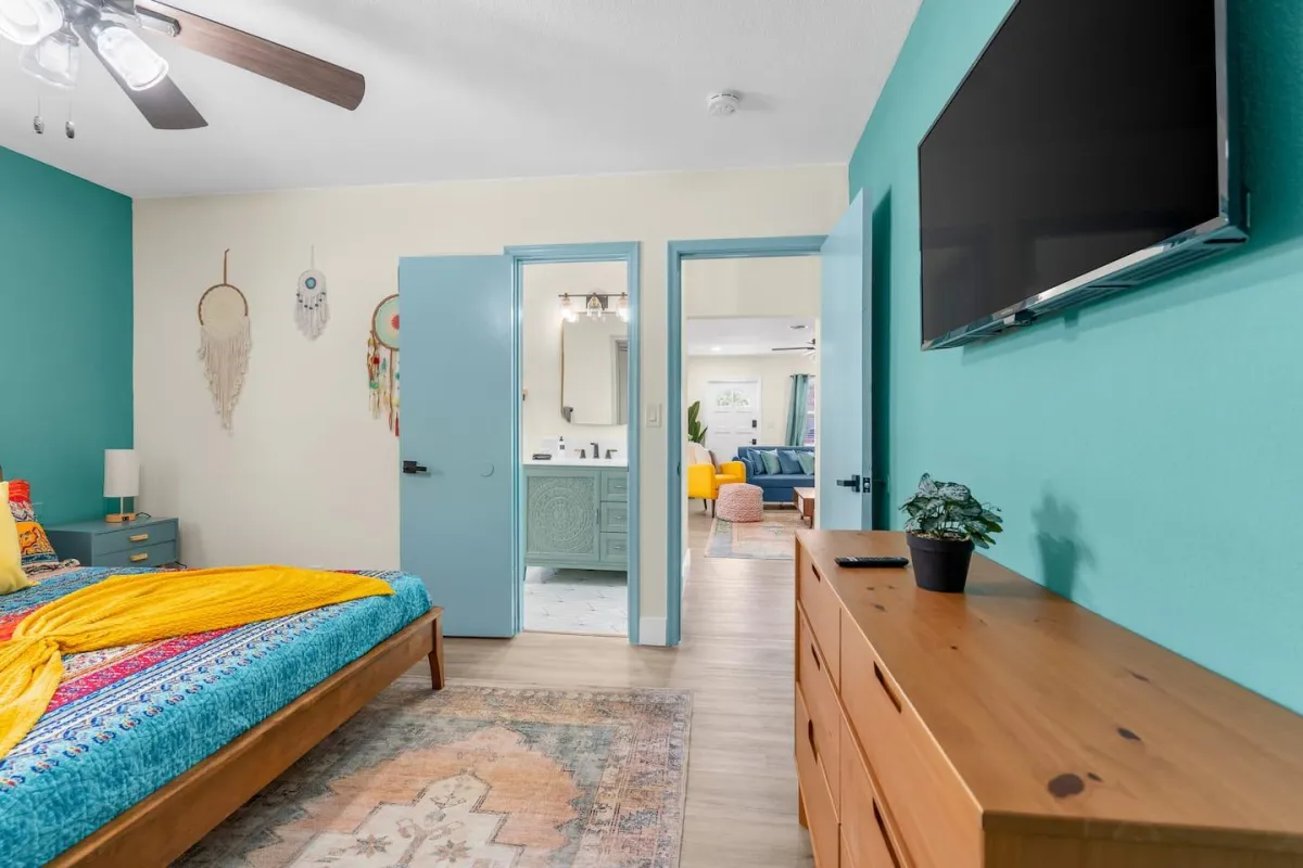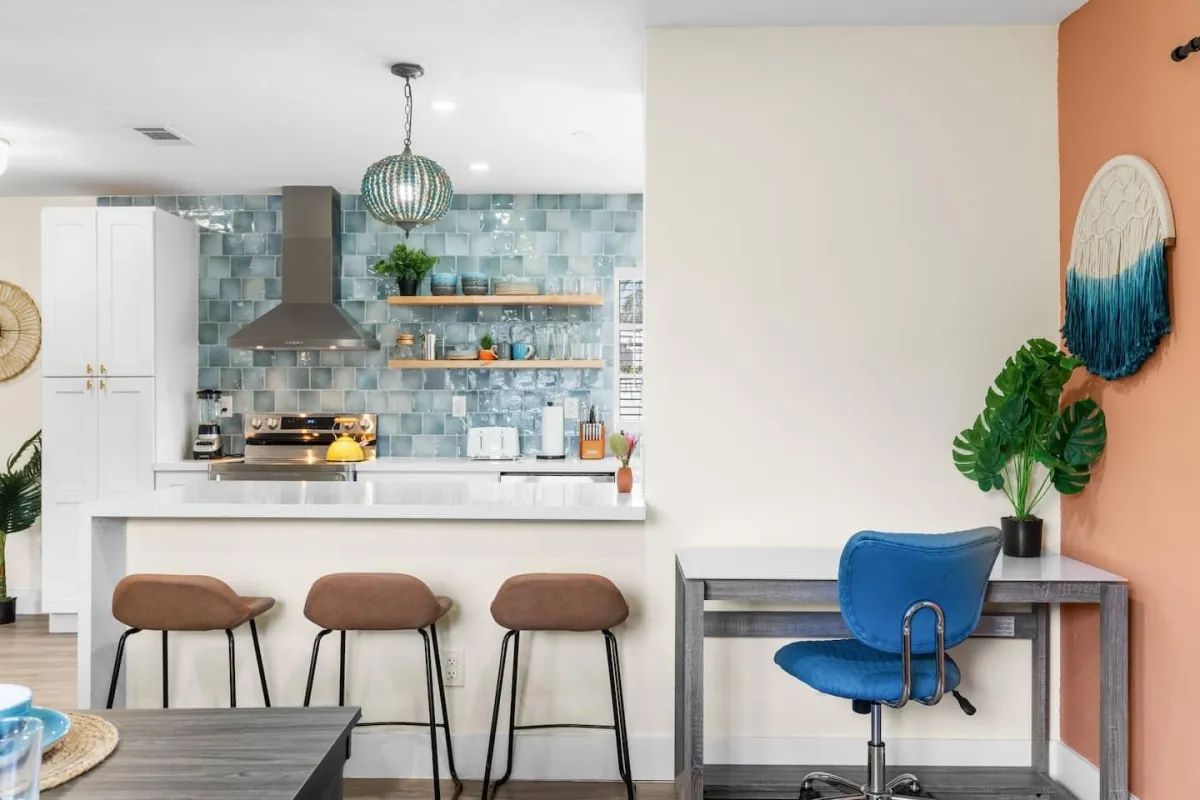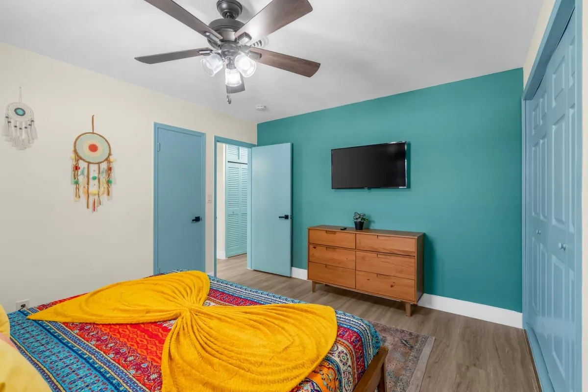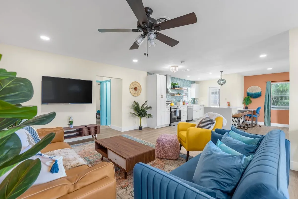 This beautiful home is perfect for families or groups of up to 7 guests. It has 3 cozy bedrooms, 2 full bathrooms & is just a short walk from the beach. The open-concept living area has a fully equipped kitchen & a large dining room table that converts into a pool & ping pong table.