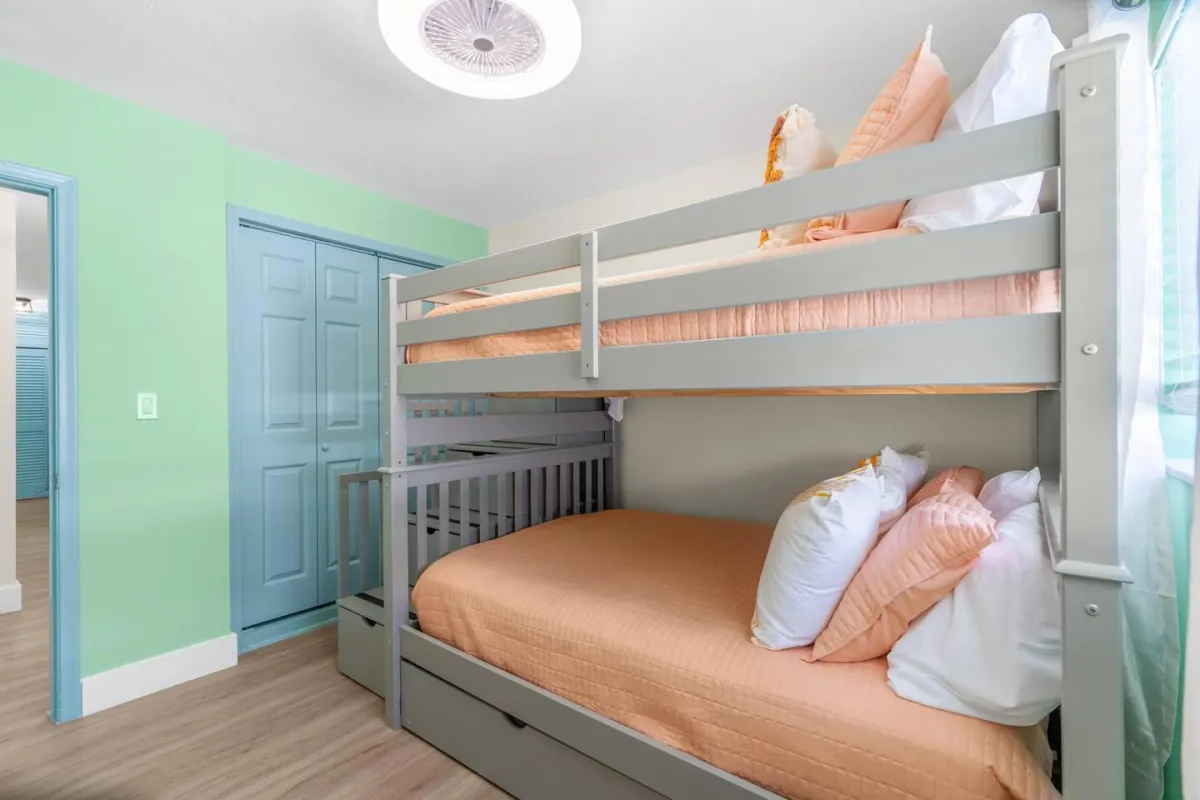 The bedrooms include king beds, a full-over-full bunkbed w/ twin trundle, sleeper sofa & a rollaway twin cot. Other amenities include a hammock, propane grill, washer/dryer, cable, FAST Wi-Fi.