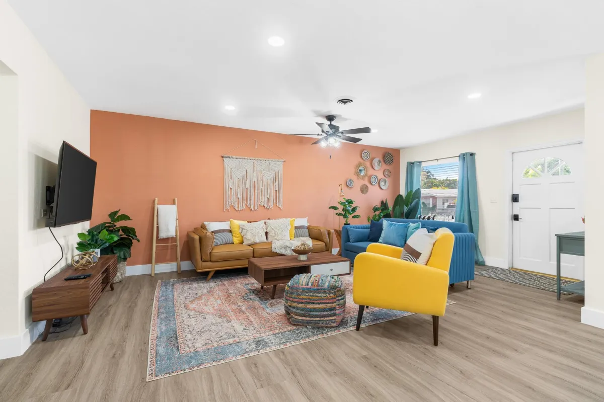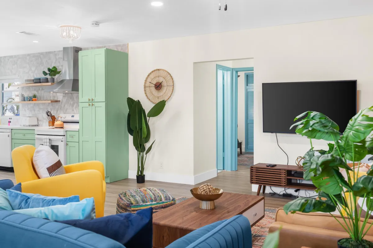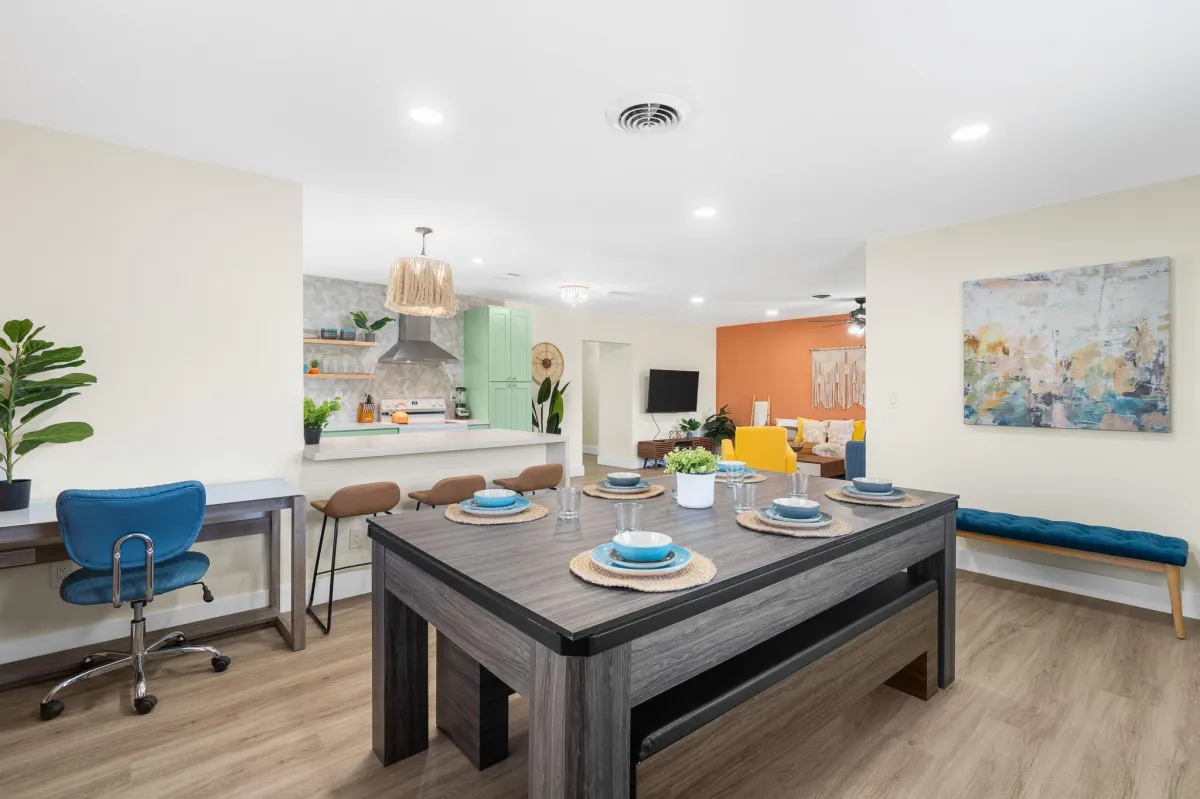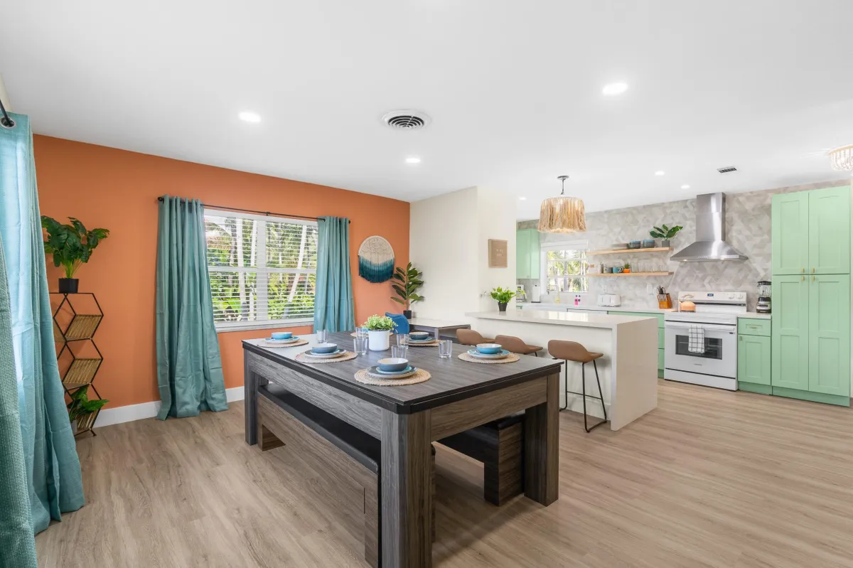 This beautiful home is perfect for families or groups of up to 7 guests. It has 3 cozy bedrooms, 2 full bathrooms & is just a short walk to the beach (5-8min walk). The open-concept living area has a fully equipped kitchen & a large dining room table that converts into a pool & ping pong table.