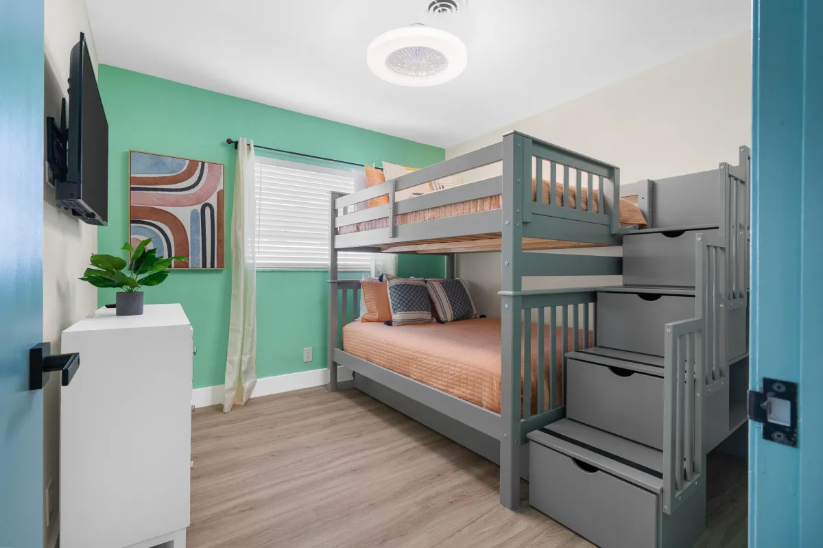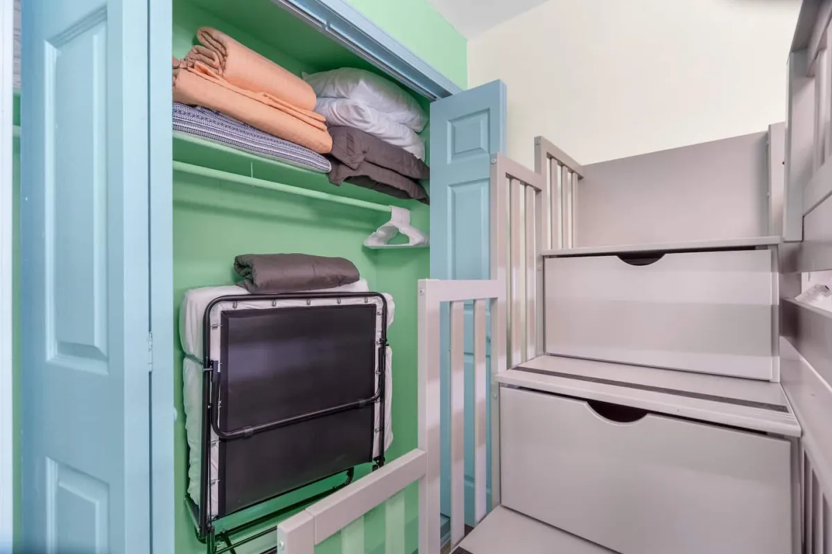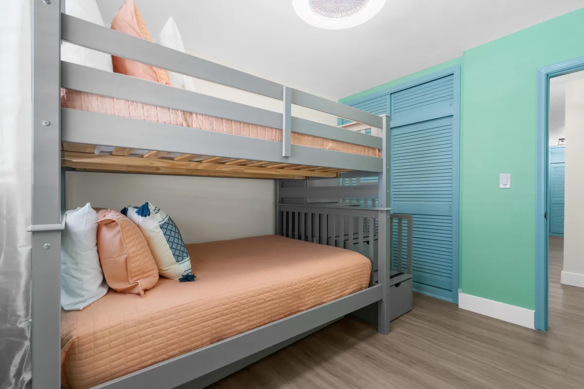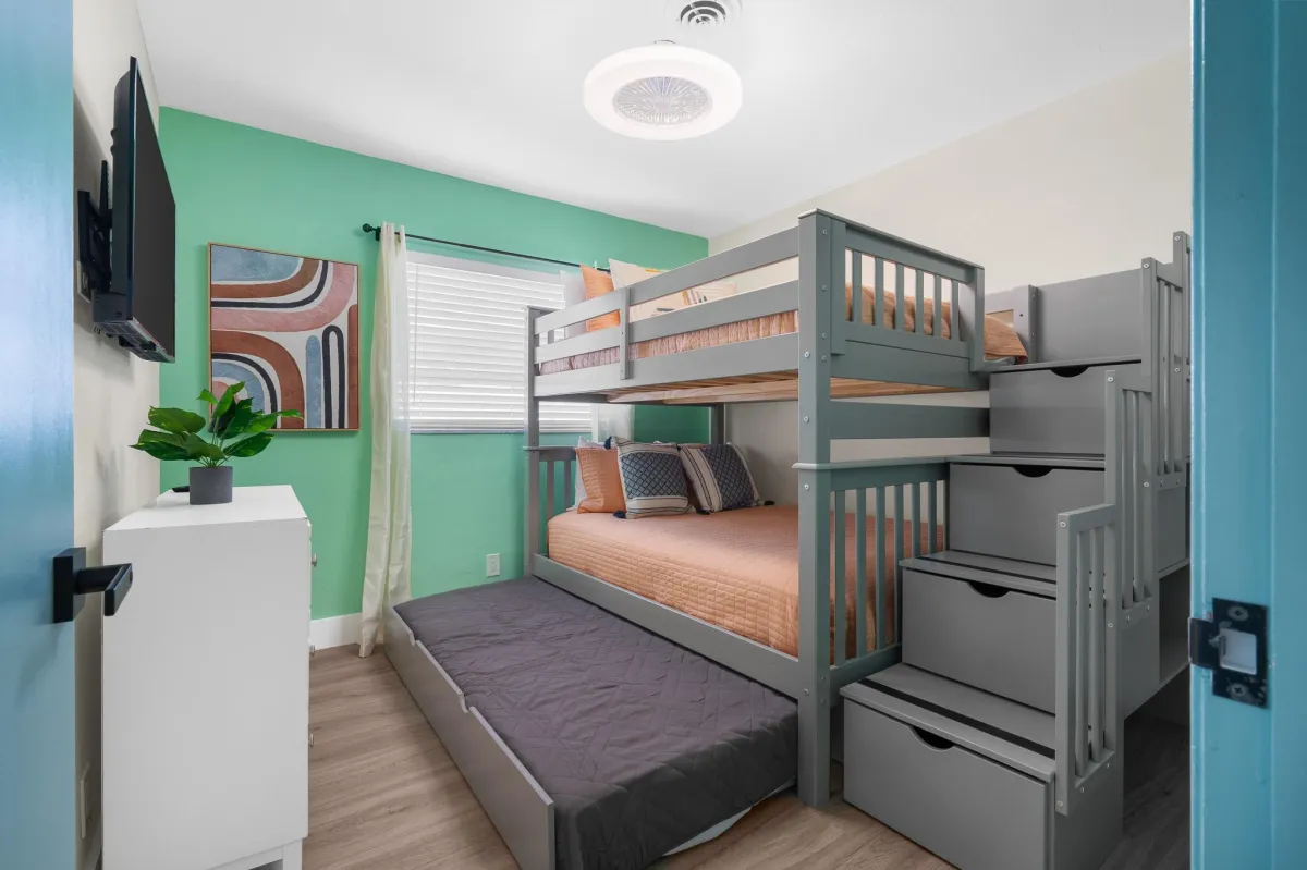 The bedrooms include king beds, a full-over-full bunkbed w/ twin trundle, sleeper sofa & a rollaway twin cot. Other amenities include a hammock, propane grill, washer/dryer, cable, FAST Wi-Fi.